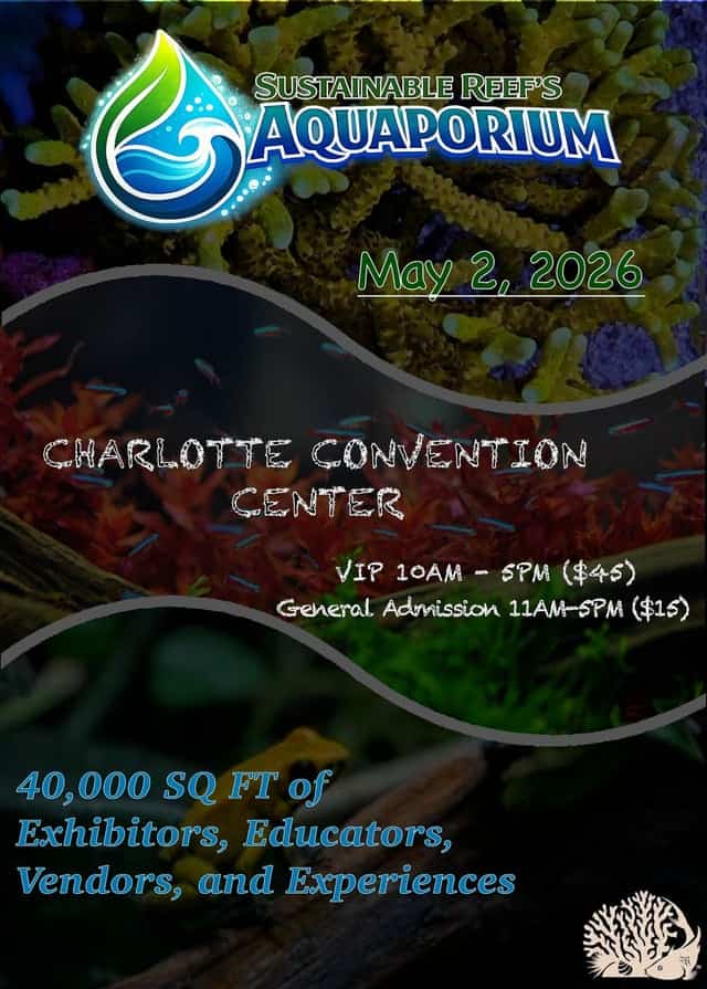 Sustainable Reef’s Aquaporium comes to Charlotte Convention, 501 S College Street, Charlotte, North Carolina, on Saturday, May 2, 2026, from 11 a.m. to 5 p.m.