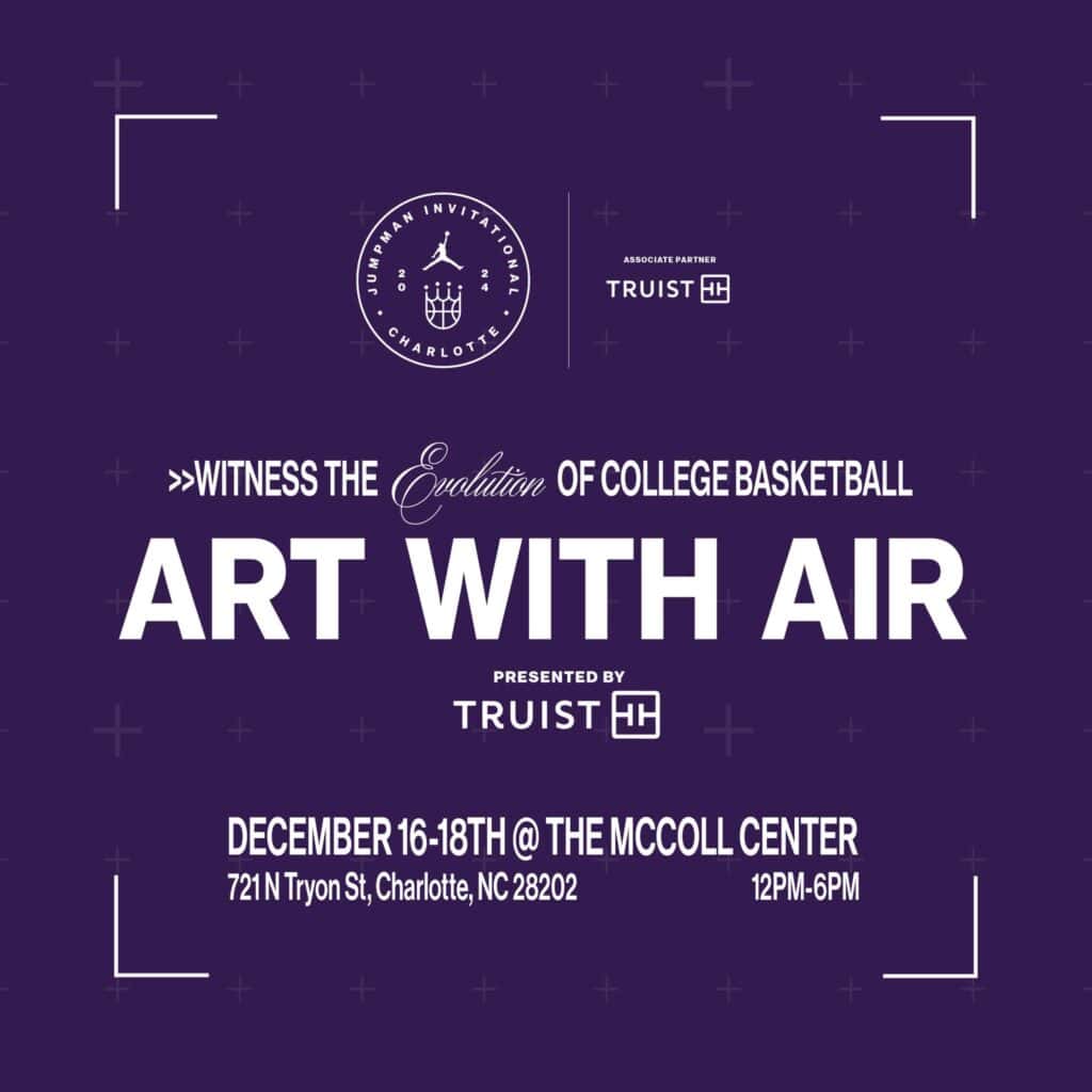 Art With Air, presented by Truist, celebrates the intersection of art and basketball. The exhibition takes place December 16 to 18, 2024, from 12 to 6 p.m., each day, at McColl Center, 721 N Tryon Street, Charlotte, North Carolina.