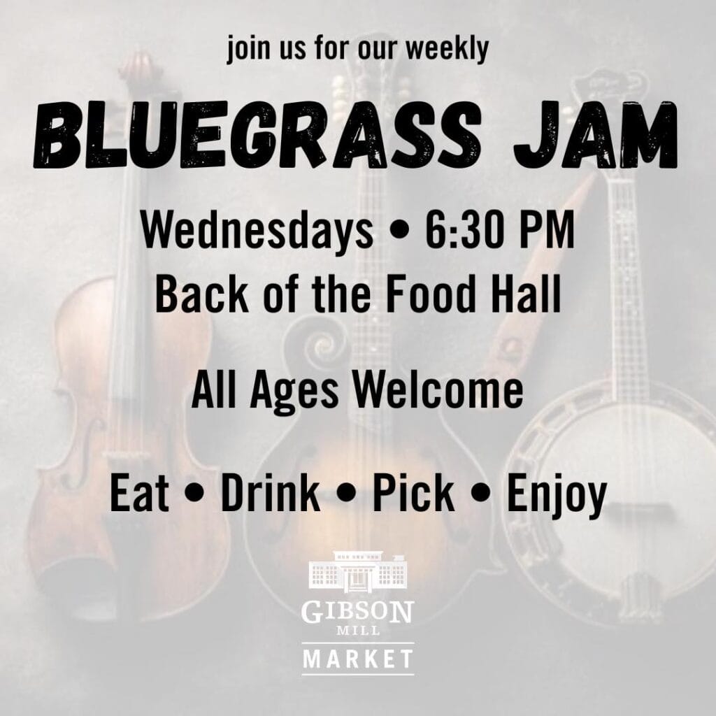 Gibson Mill Market, 305 McGill Avenue NW, Concord, North Carolina, is hosting a weekly bluegrass jam on Wednesdays, starting March 4, 2026, from 6:30 to 8:30 p.m. It’s currently scheduled through the end of 2026.