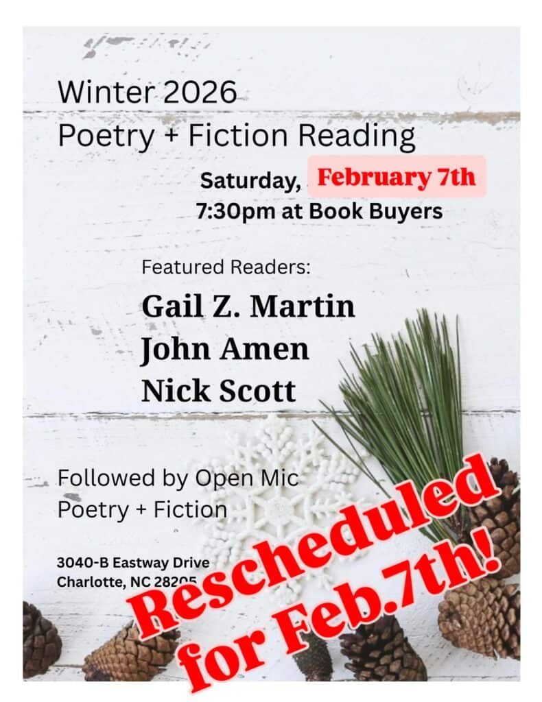 Featured readers are Gail Z. Martin, John Amen and Nick Scott.