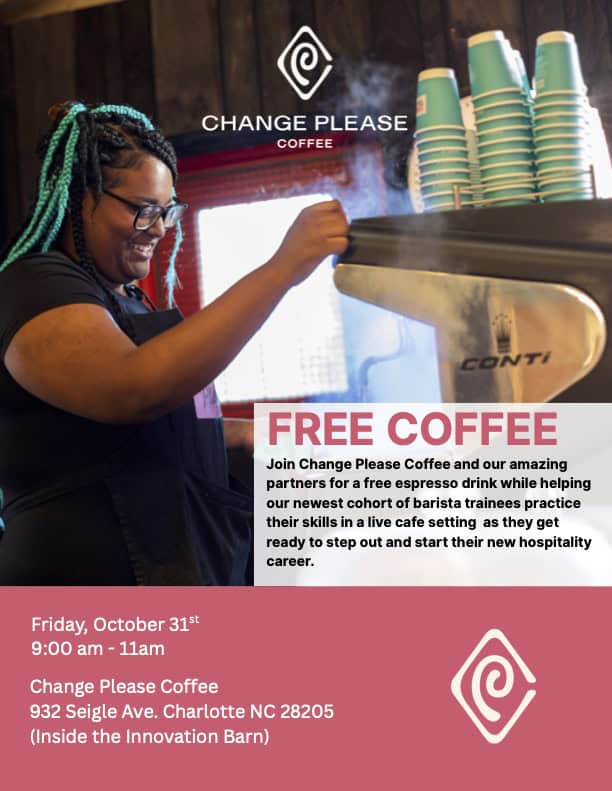 Change Please Coffee, inside Innovation Barn at 932 Seigle Avenue, Charlotte, North Carolina, offers people who have struggled with homelessness training as baristas.