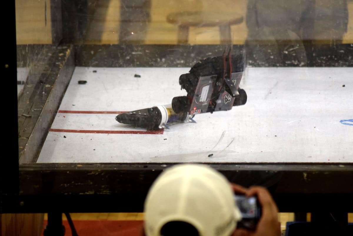 Robots will battle it out in an 8-foot cage of bulletproof glass and metal for two minutes, or until one robot is dead (not moving.)