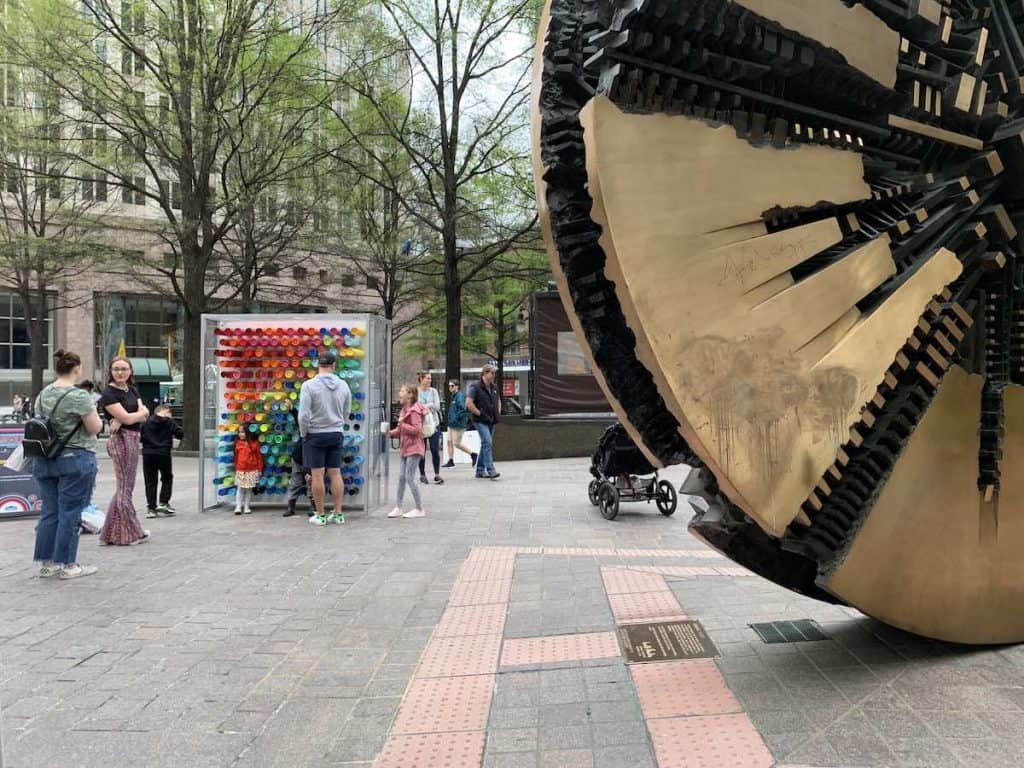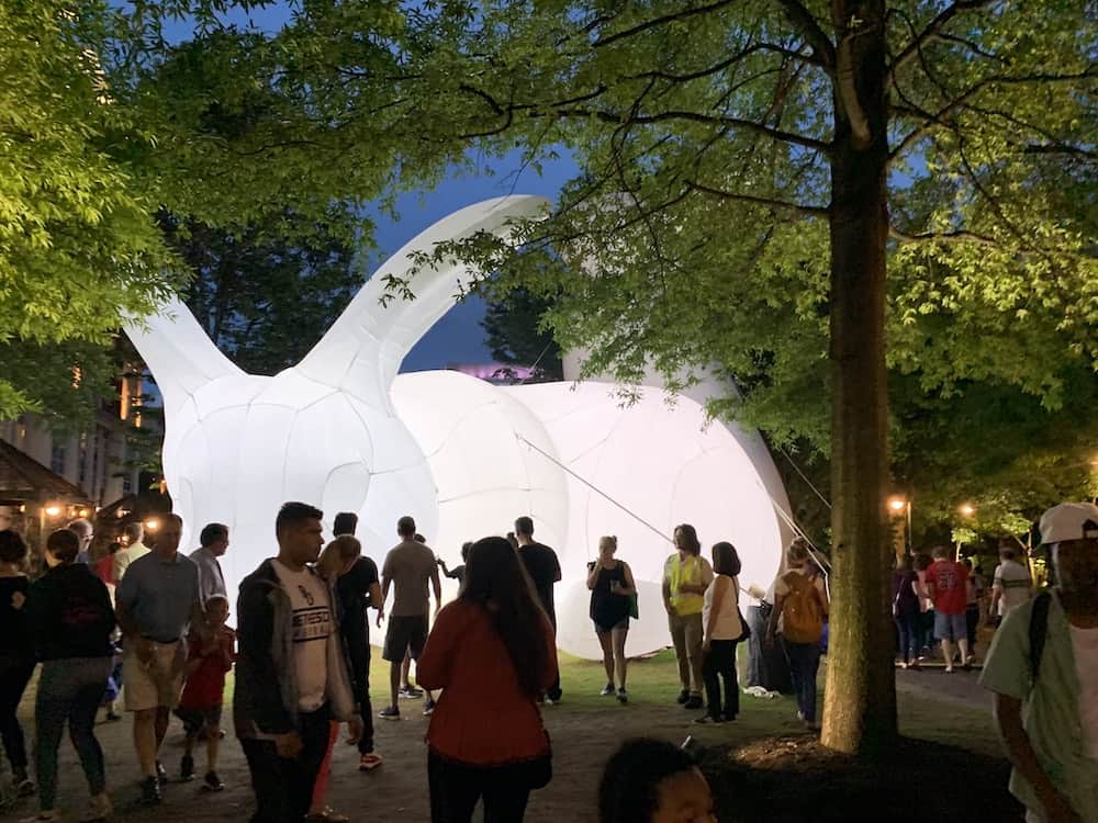 The art installations are one of the most exciting components of Charlotte SHOUT! They are interactive, fun, and (often) big! Kids love them. Everyone finds a different way to interact with them. All of the installations are within just a few blocks in Uptown Charlotte.
