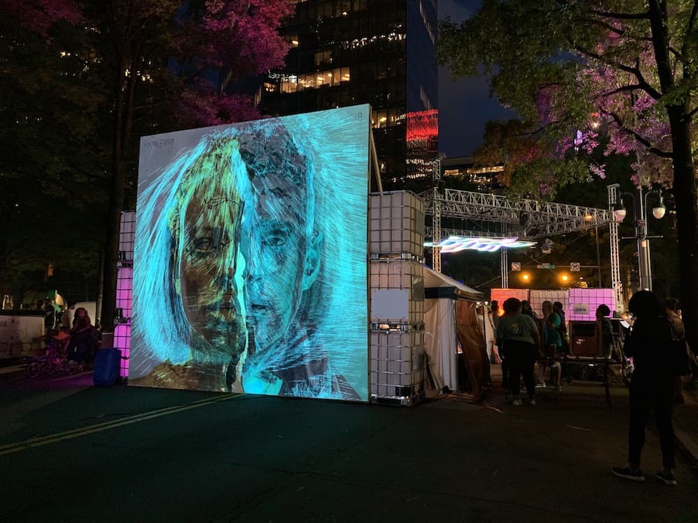 Step into the future with “STARGATE,” an innovative projection sculpture by Jay Tettamanti the creative mind behind Chalk River Labs. Featuring a 12ft square encompassing a circular ring, ingeniously designed to usher viewers on an awe-inspiring journey through the cosmos. This sculptural marvel employs projection mapping to wrap the entire structure with mesmerizing visuals that can be appreciated from any vantage point. Viewers are encouraged to climb into the central ring, serving as both a meditative space and a source of breathtaking photo opportunities, creating interaction and shared experiences. Hypnotic visuals seamlessly meld with a contemplative soundtrack, creating an otherworldly portal where the audience is transported to the realm of the stars.