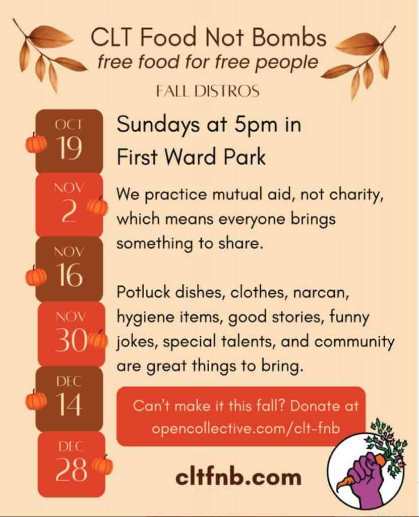 If you can’t make it but would like to help, you can donate to CLT Food Not Bombs here.