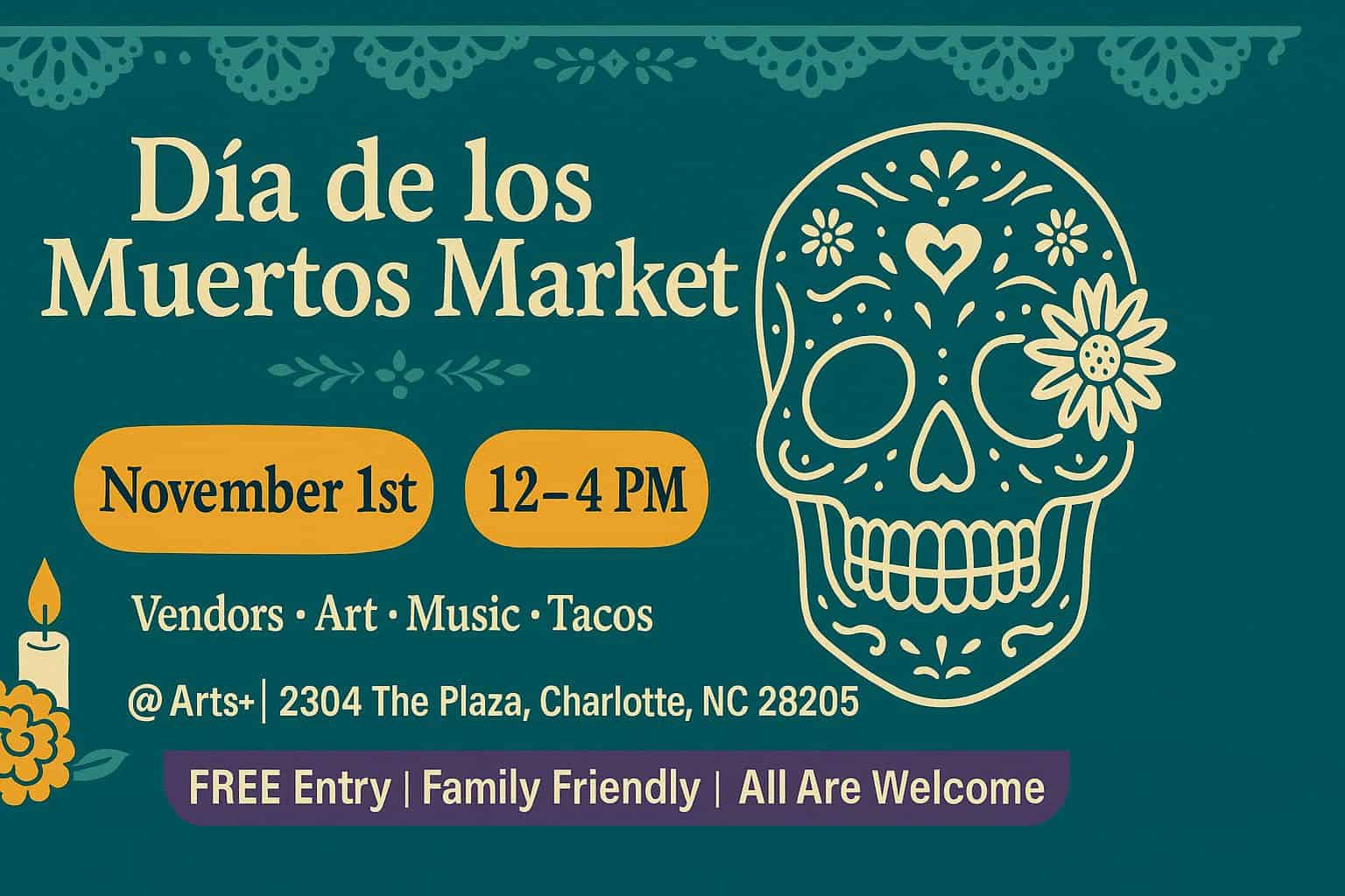 Día de los Muertos Market is a celebration of community, community and tradition. It takes place Saturday, November 1, 2025, from 12 to 4 p.m., Arts+, 2304 The Plaza, Charlotte, North Carolina.