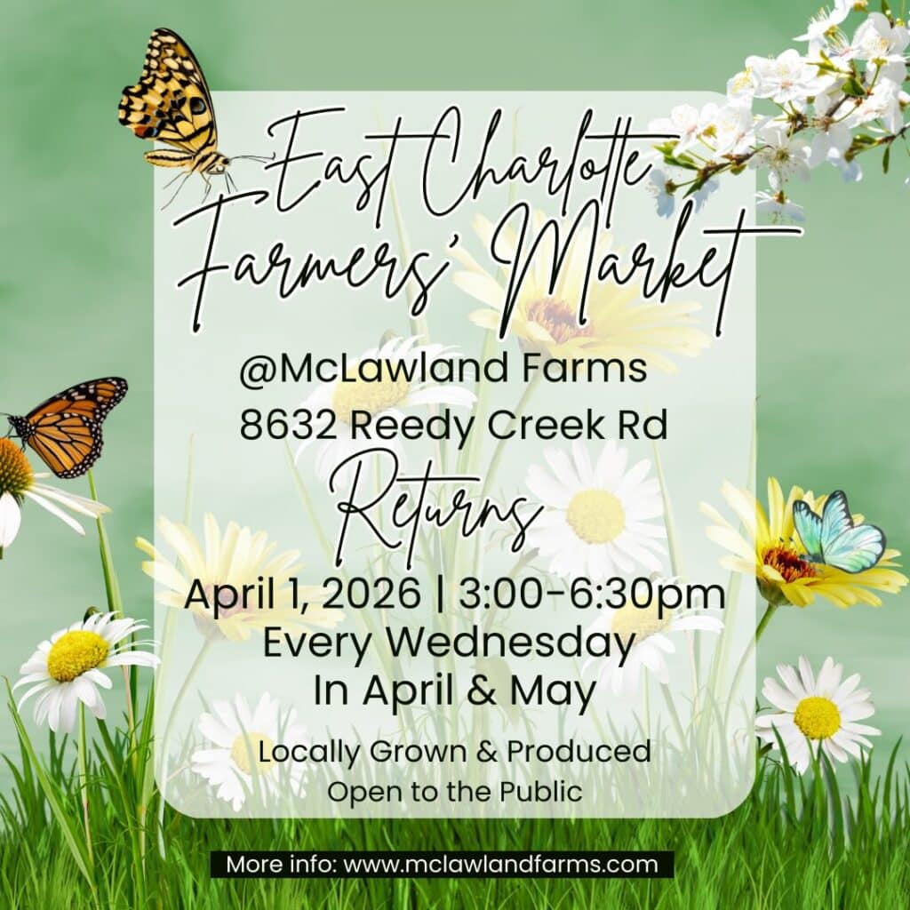McLawland Farms LLC, at 8632 Reedy Creek Road, Charlotte, North Carolina, is hosting East Charlotte Farmers’ Market every in the spring and fall of 2026.