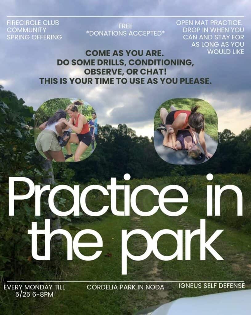 Igneus Self Defense is hosting Practice in the Park, a weekly time for drills, conditioning and practicing self defense.