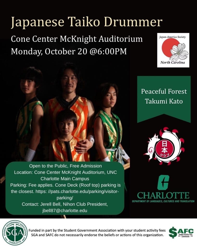 For more details, contact Jerell Bell, Nihon Club President: jbell87@charlotte.edu.