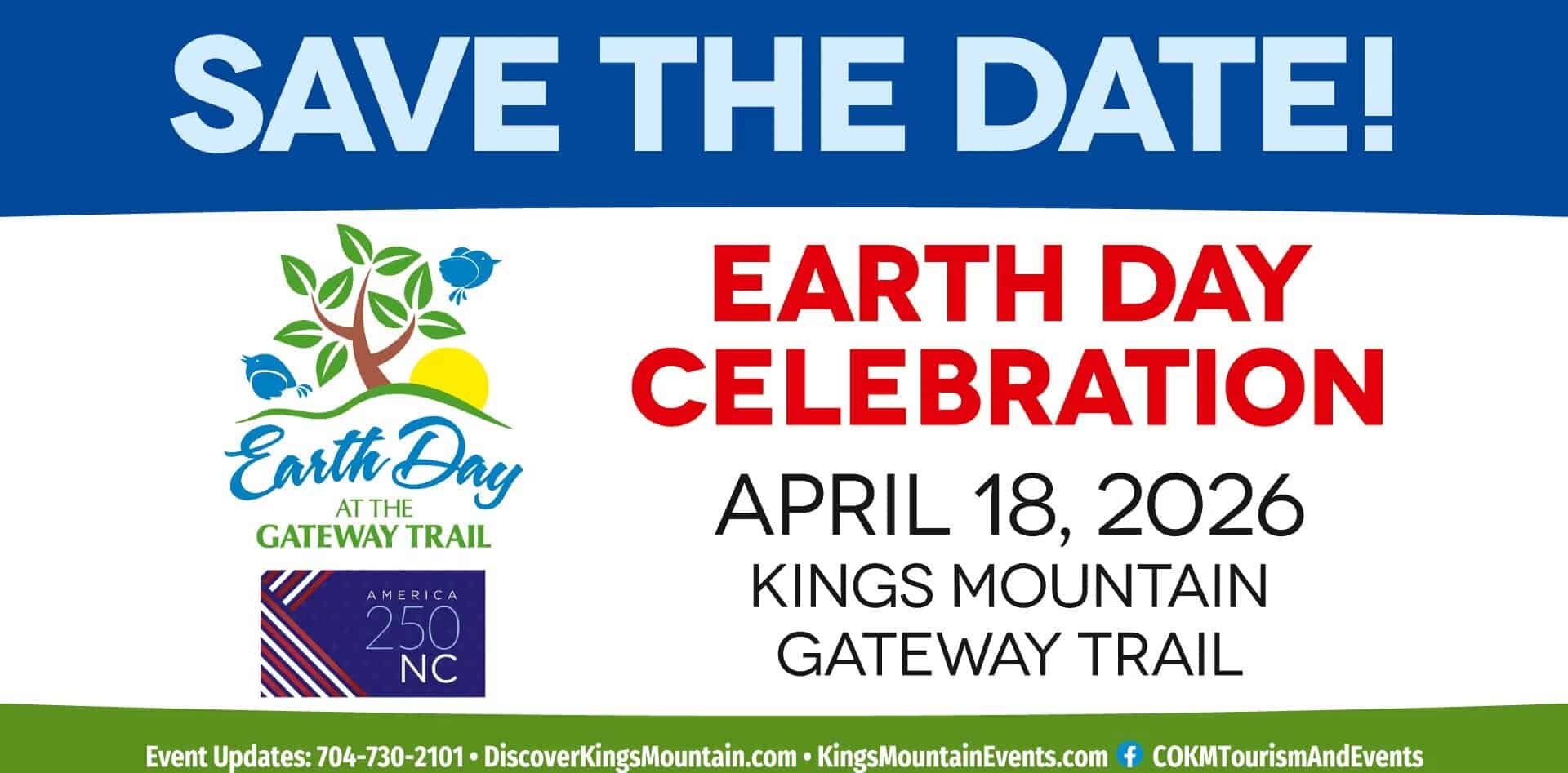 The City of Kings Mountain is hosting Earth Day at the Gateway Trail on Saturday, April 18, 2026, from 11 a.m. to 3 p.m., on the Kings Mountain Gateway Trail.