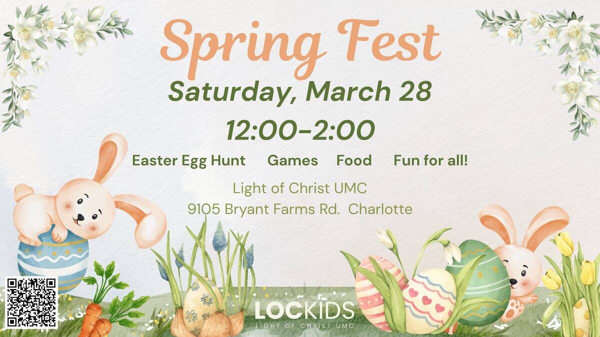 Light of Christ United Methodist Church, 9106 Bryant Farms Road, is hosting a Spring Festival and Egg Hunt on Saturday, March 28, 2026, from 12 to 2 p.m. This is a free community event.
