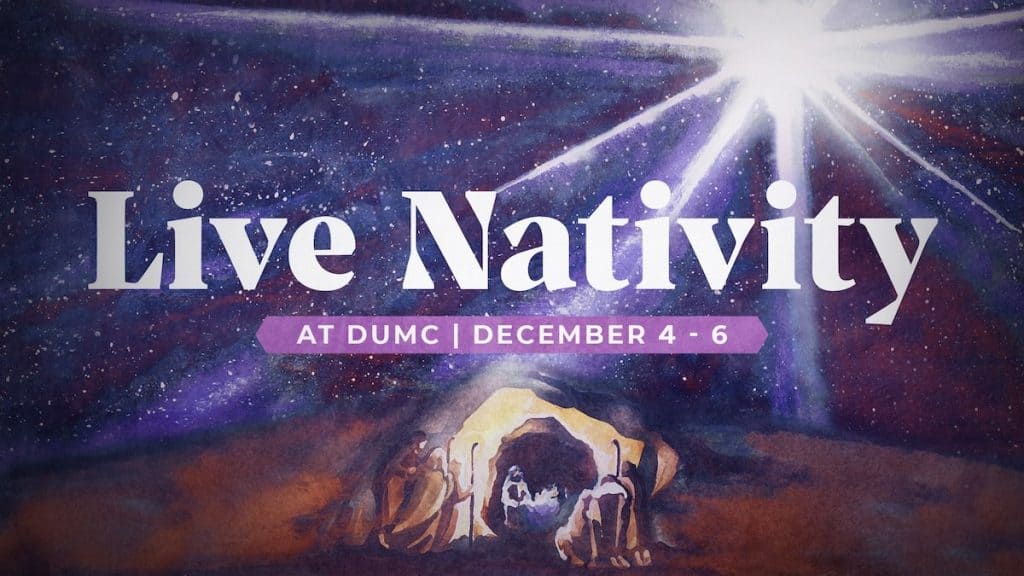 Davidson United Methodist Church, at 233 S Main Street, Davidson, North Carolina is hosting Experience Bethlehem at the Live Nativity on December 4 to 6, 2025, from 6 to 9 p.m. each day.