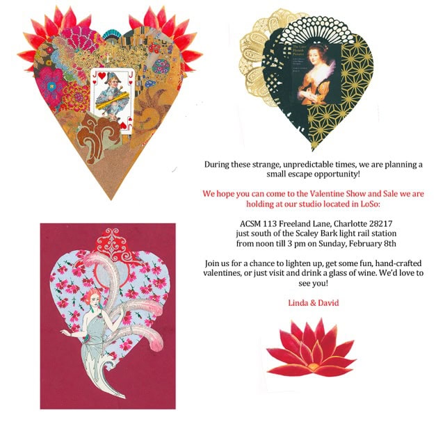 LoSo Studios, at 113 Freeland Lane, Charlotte, North Carolina, is hosting a Valentine’s Show and Sale on Sunday, February 8, 2026, from 12 to 3 p.m.