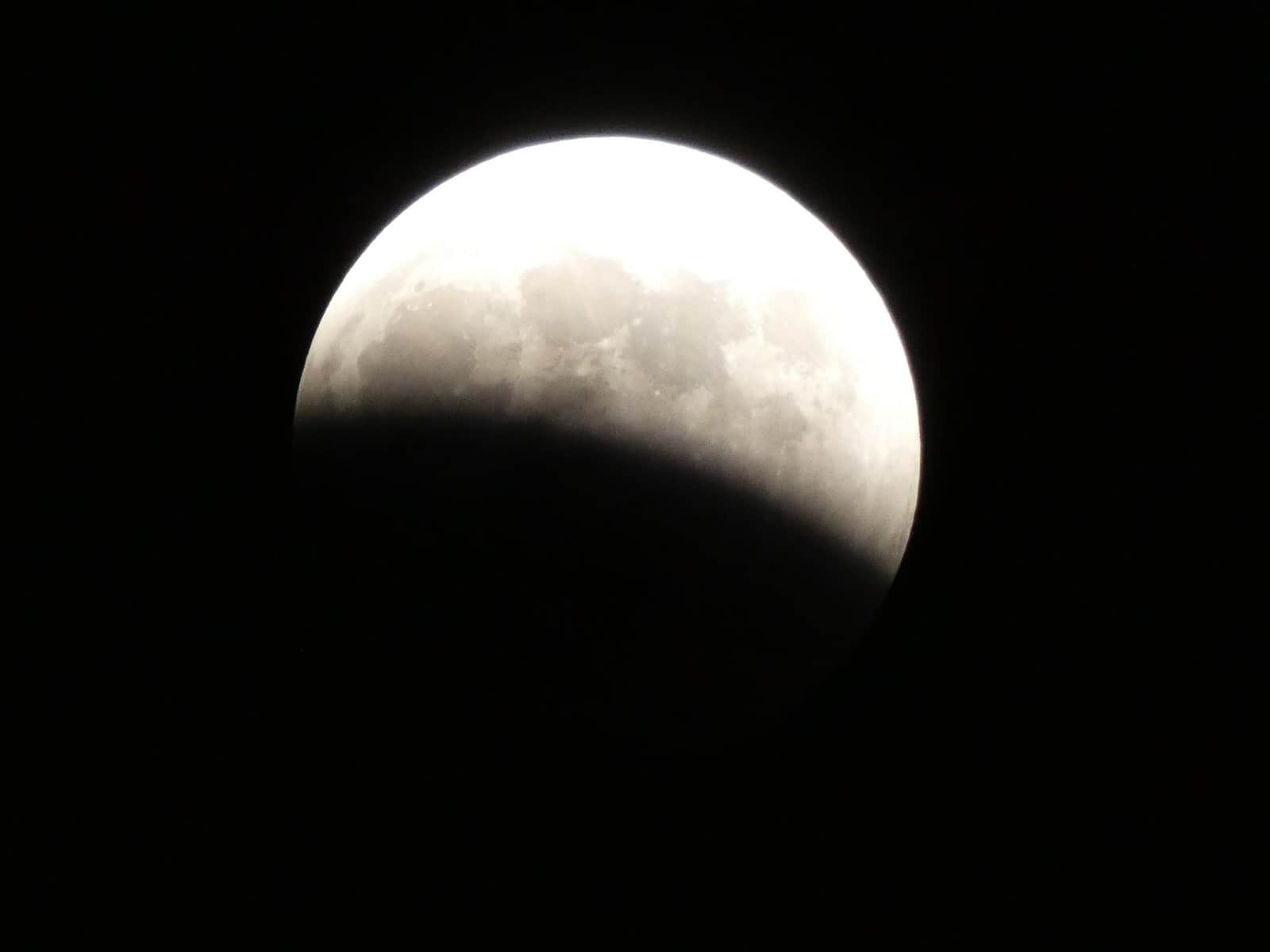 As the moon passes through the shadow of the earth, it will turn red. As this happens, you’ll see that the earth’s shadow is curved. When the eclipse is total, it will look like a dark red hole in the sky.