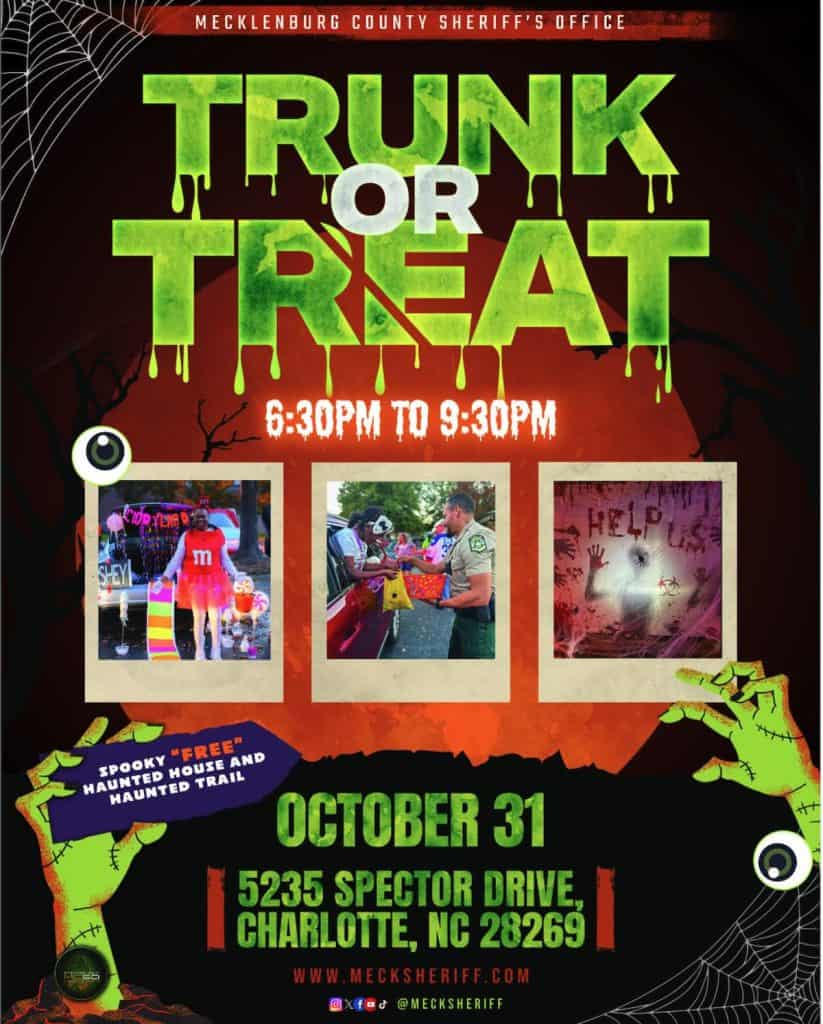 Mecklenburg County Sheriff’s Office is hosting a free Halloween event at their facility at 5235 Spector Drive, Charlotte, North Carolina. It takes place on Friday, October 31, 2025, from 6:30 to 9:30 p.m.