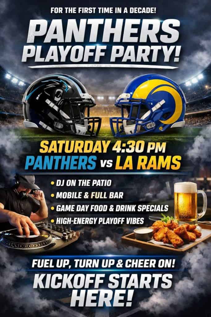 Saturday, January 10, 2026, at 4:30 p.m., the Panthers will take on the Rams in the Wildcard game. Show up early to grab a spot.