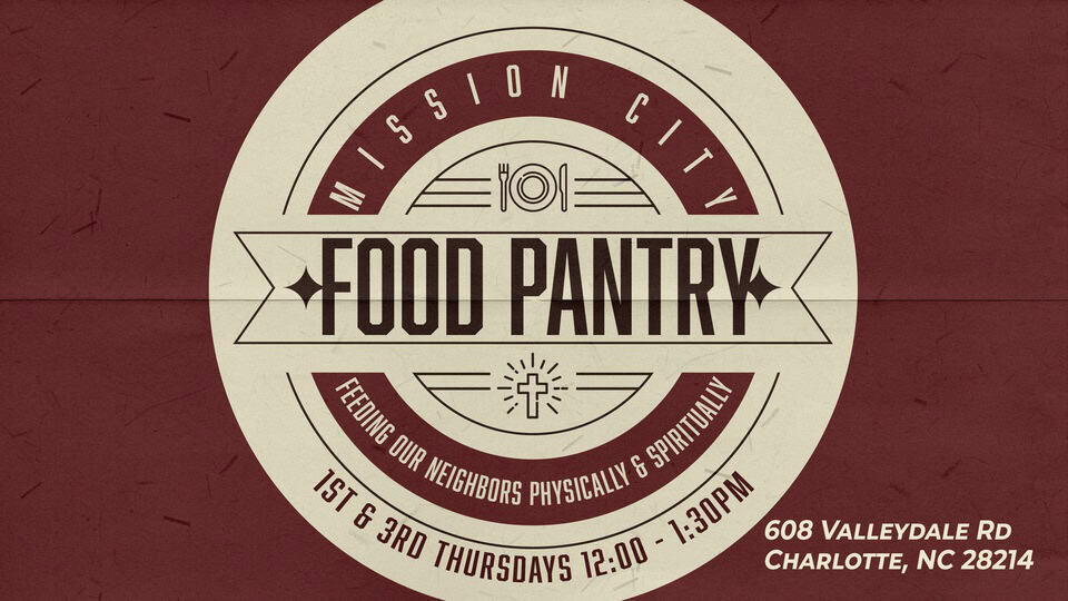 Mission City Church, 608 Valleydale Road, Charlotte, North Carolina, holds regularly scheduled food pantry distribution events.