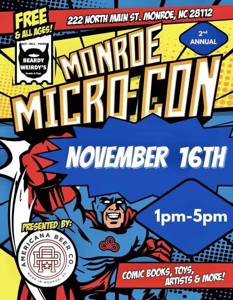 Monroe Micro-Con takes place Sunday, November 16, 2025, from 1 to 5 p.m., at Americana Beer Co., 222 North Main Street, Monroe, North Carolina.