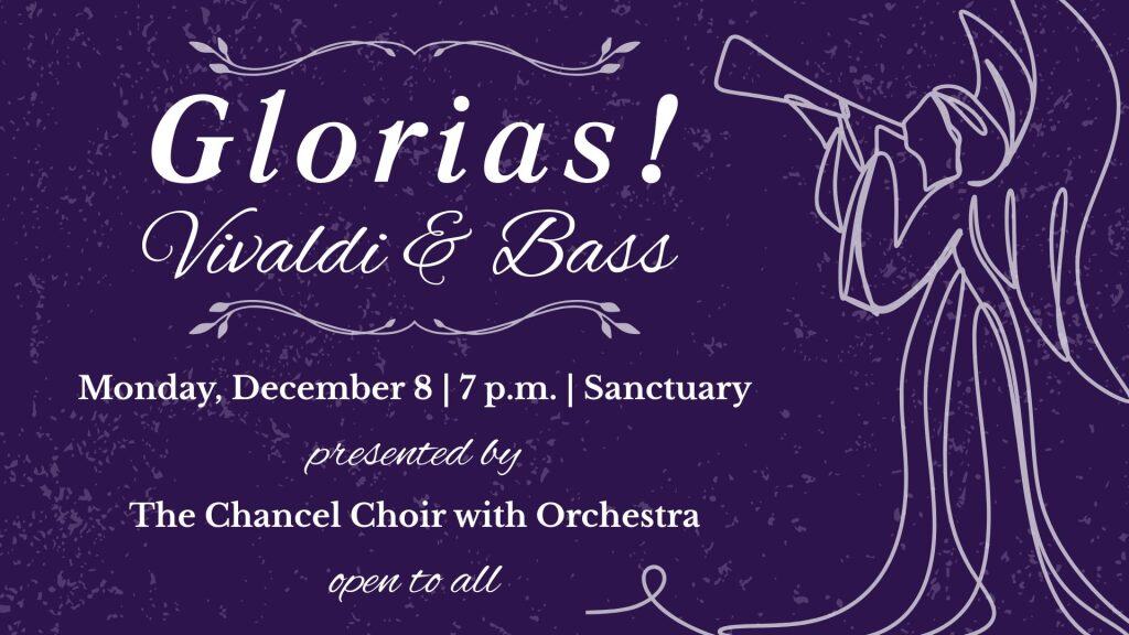 Myers Park Presbyterian Church, at 2501 Oxford Place, Charlotte, North Carolina, is presenting Glorias! Vivaldi & Bass on Monday, December 8, 2025, at 7 p.m. Announced on Facebook.