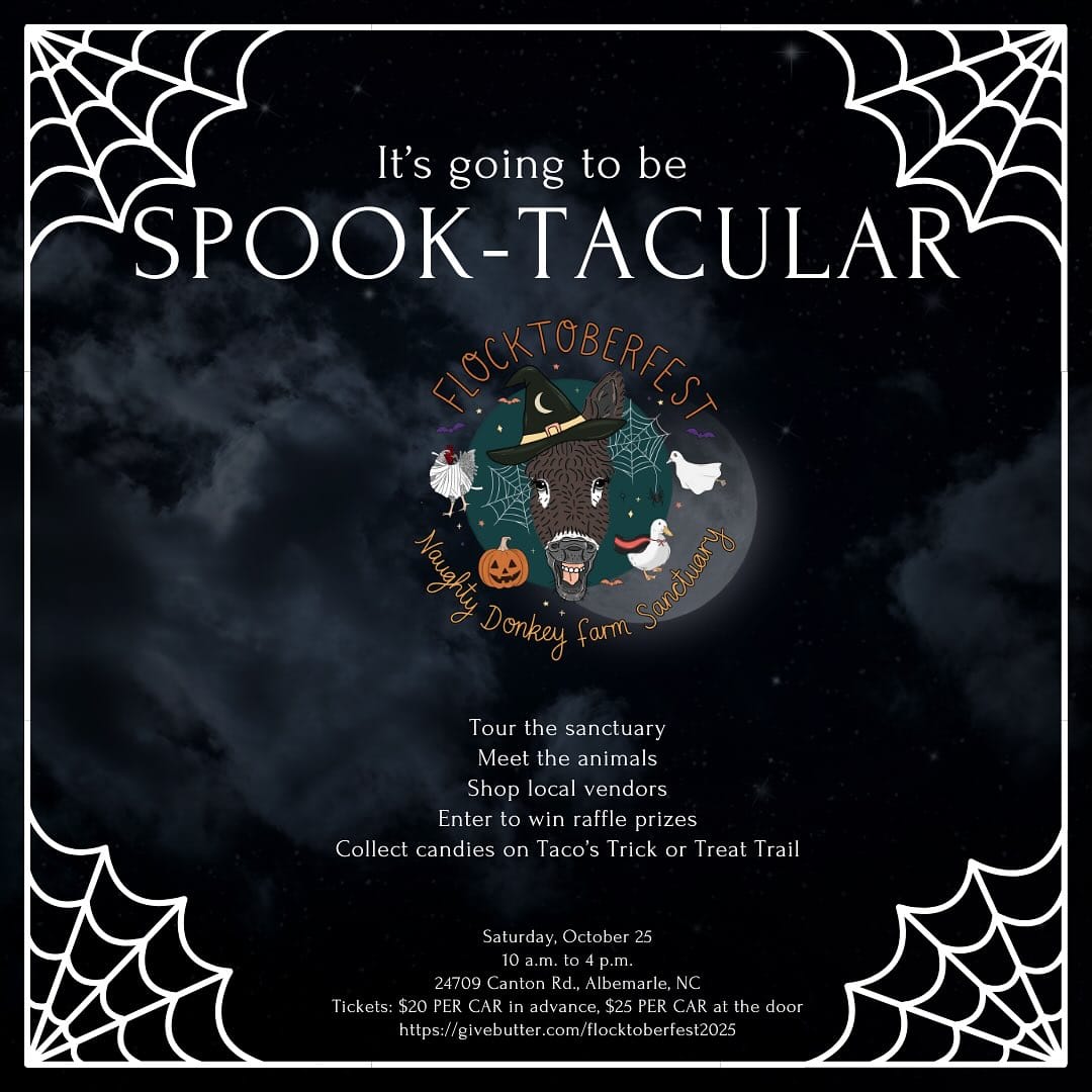 Check out our full events calendar, where you can enter any date, or look at the events for the next few days here:Naughty Donkey Farm Sanctuary, Albemarle