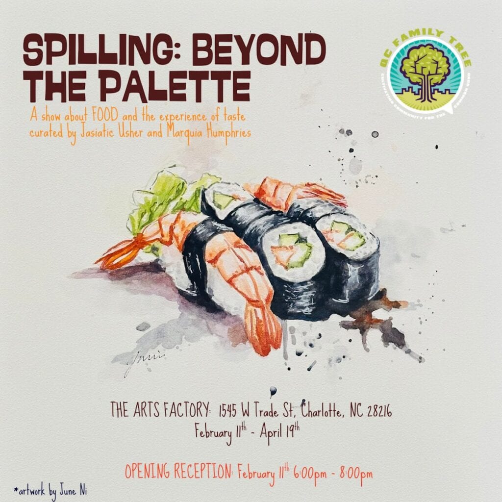 QC Family Tree is hosting an art show, Spilling: Beyond the Palette at The Arts Factory, 1545 W Trade Street, Charlotte, North Carolina, from February 11 to April 19, 2026.