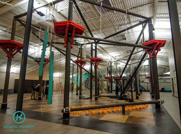 Ground challenges include the Ninja warrior course, parkour training area, bouldering wall and warped wall.