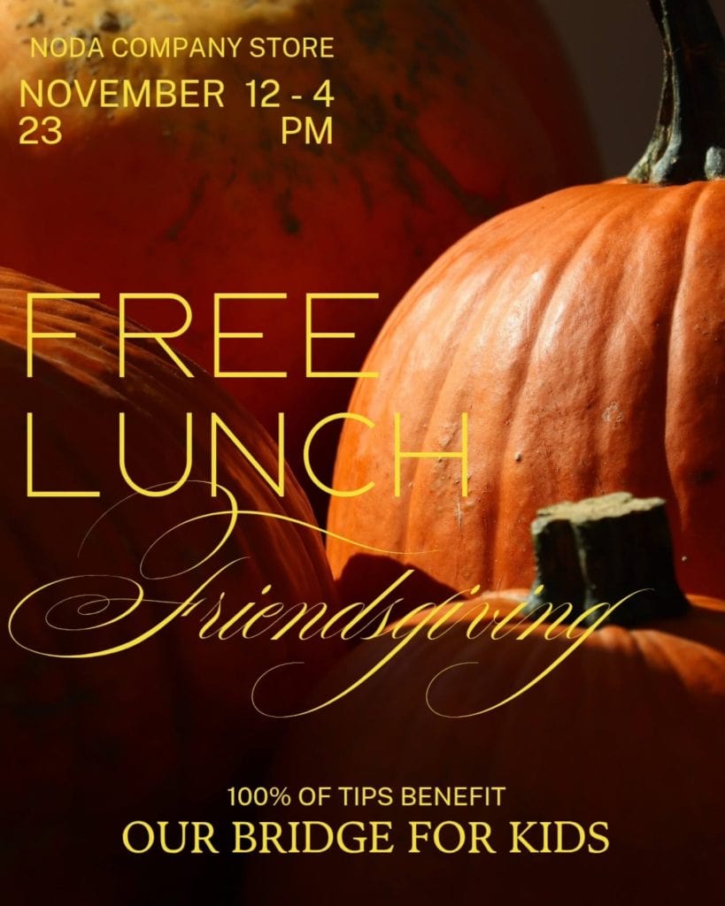 NoDa Company Store is offering a FREE Friendsgiving Lunch. We suggest that you get there early. This event is a true community event. It’s not a grab ‘n’ go kind of thing. It’s a get-to-know-your-neighbors kind of thing. There is lots of seating. Please make sure to buy a drink.