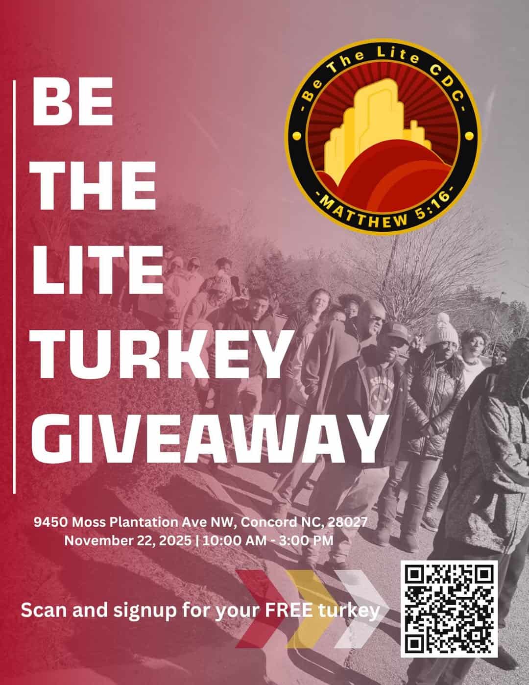 Be the Lite CDC and the Bethel Temple Faith Church will be giving one free turkey to every household who registers, while supplies last. Registration closes November 18. Look for updates on Be The Lite’s Facebook page.