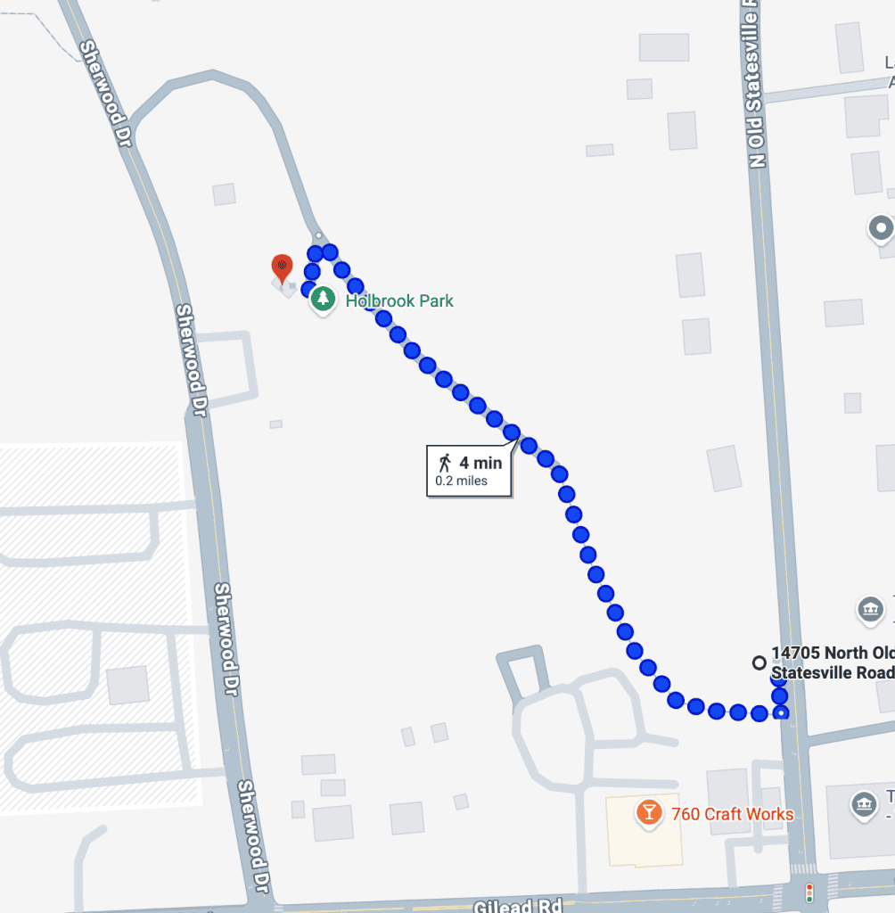 The lights are located along the Huntersville Downtown Greenway. The trail goes from the Trailhead Entrance, across from the new Town Hall Building, 14705 N Old Statesville Rd, to Holbrook Park, 100 Sherwood Drive.